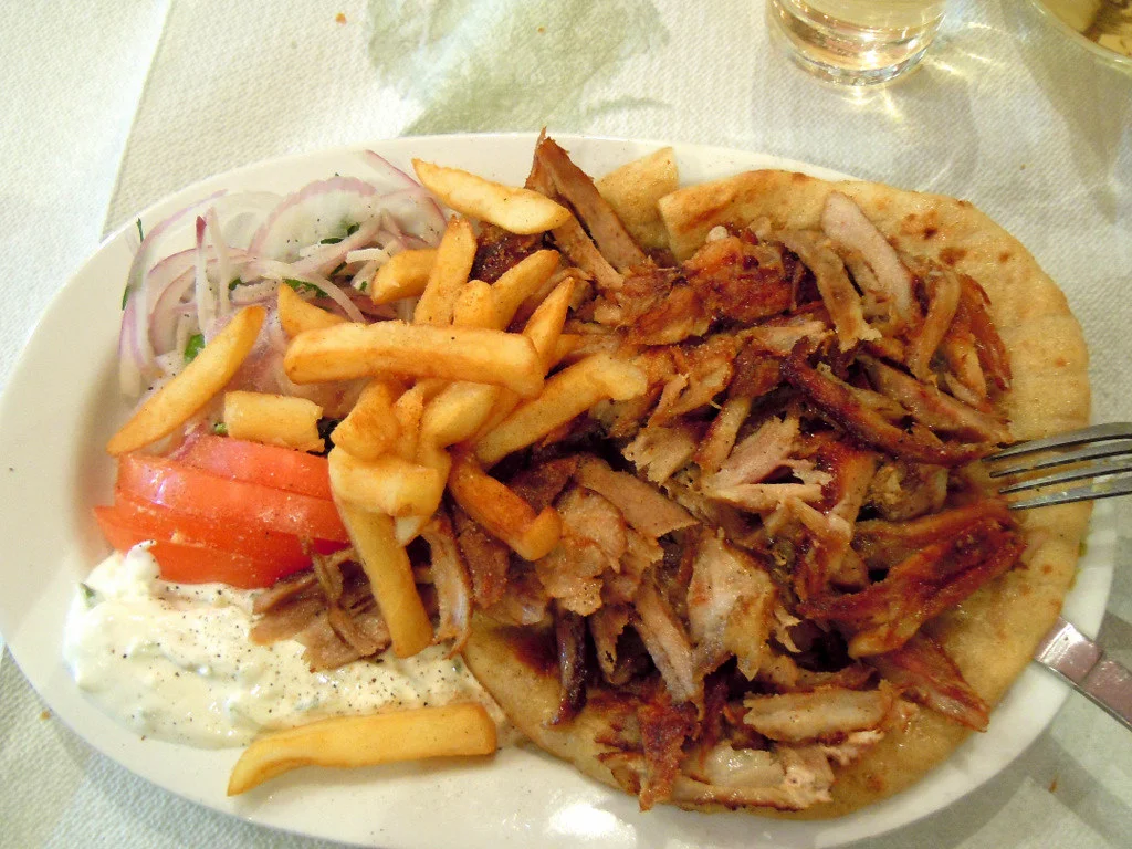 Γύρο κοτόπουλο, 1 καλαμάκι χοιρινό.