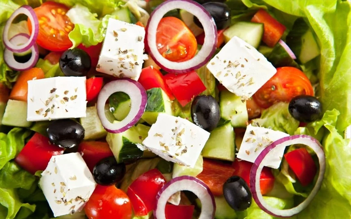 (ντομάτα, αγγούρι, πιπεριές, κρεμμύδι, ελιές, κάπαρη, ρίγανη)