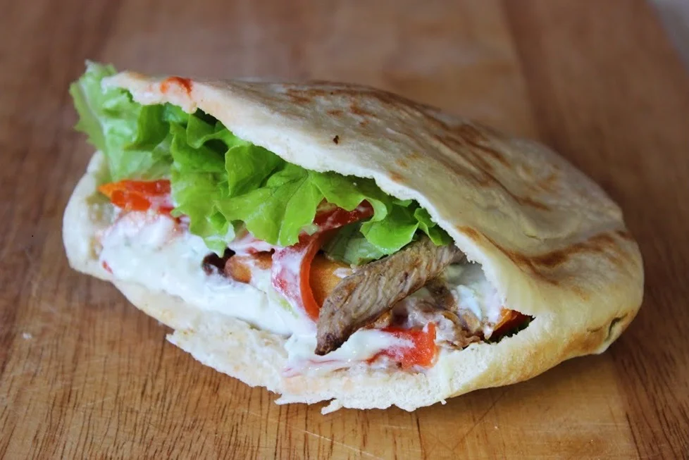 πίτα + 0,50€ Μπέικον + 1,50€)