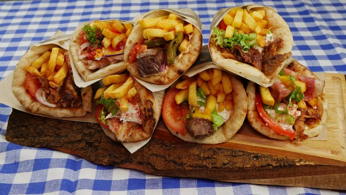 (σαλάτα, 4 πίτες, πατάτες, σως + τζατζίκι)